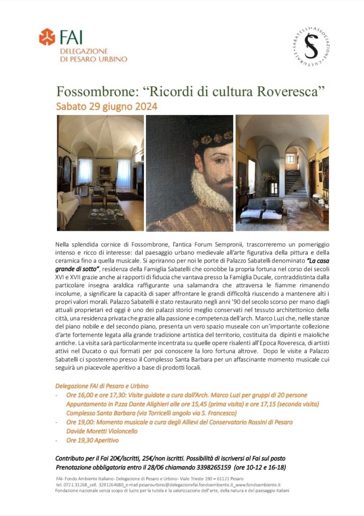 Nella splendida cornice di Fossombrone, l’antica Forum Sempronii, trascorreremo un pomeriggio intenso e ricco di interesse: dal paesaggio urbano medievale all’arte figurativa della pittura e della ceramica fino a quella musicale.