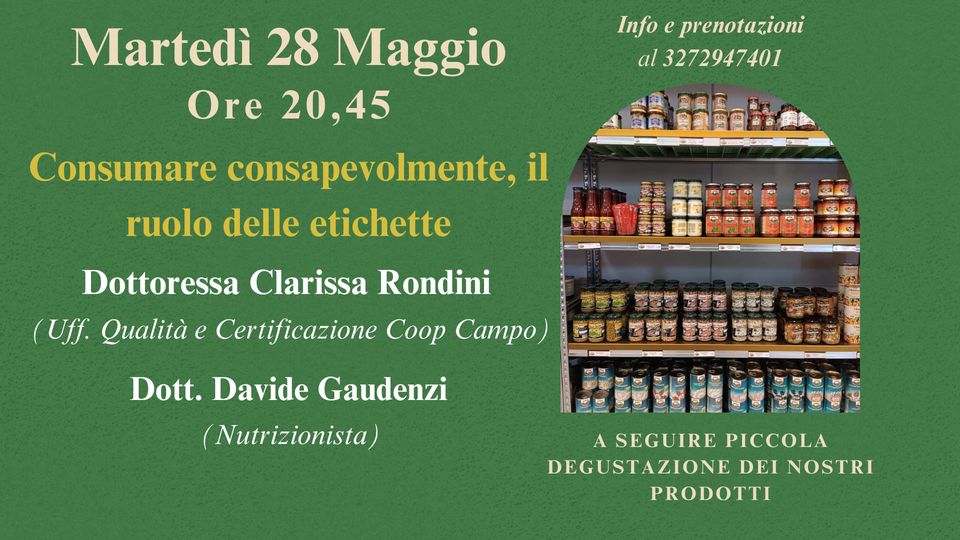 In questa serata l’argomento riguarderà il consumo responsabile, con il ruolo fondamentale delle etichette